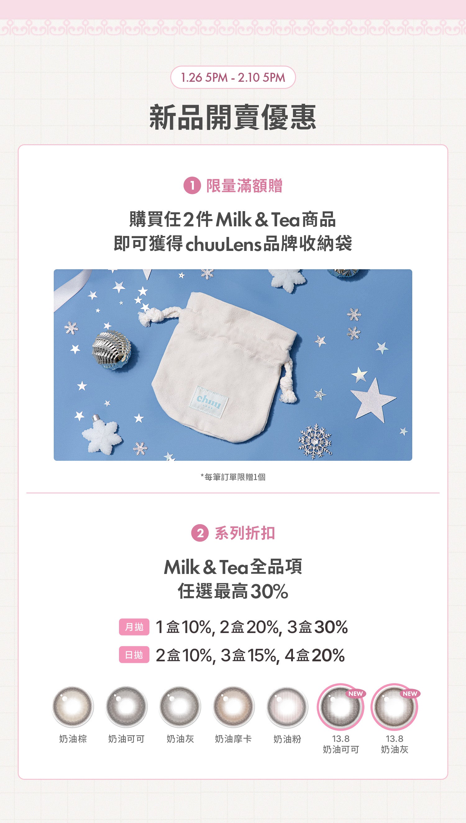 購買任2件Milk & Tea贈品牌收納袋🩷