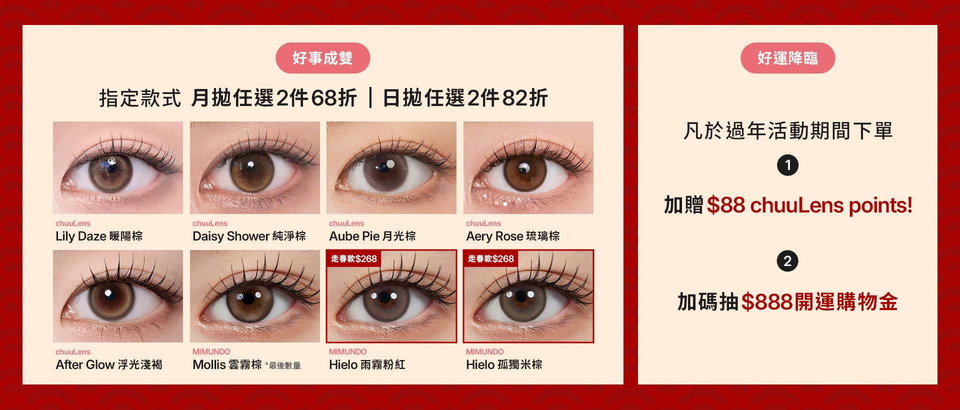 好事成雙✌️ 指定日月拋任2件68折起